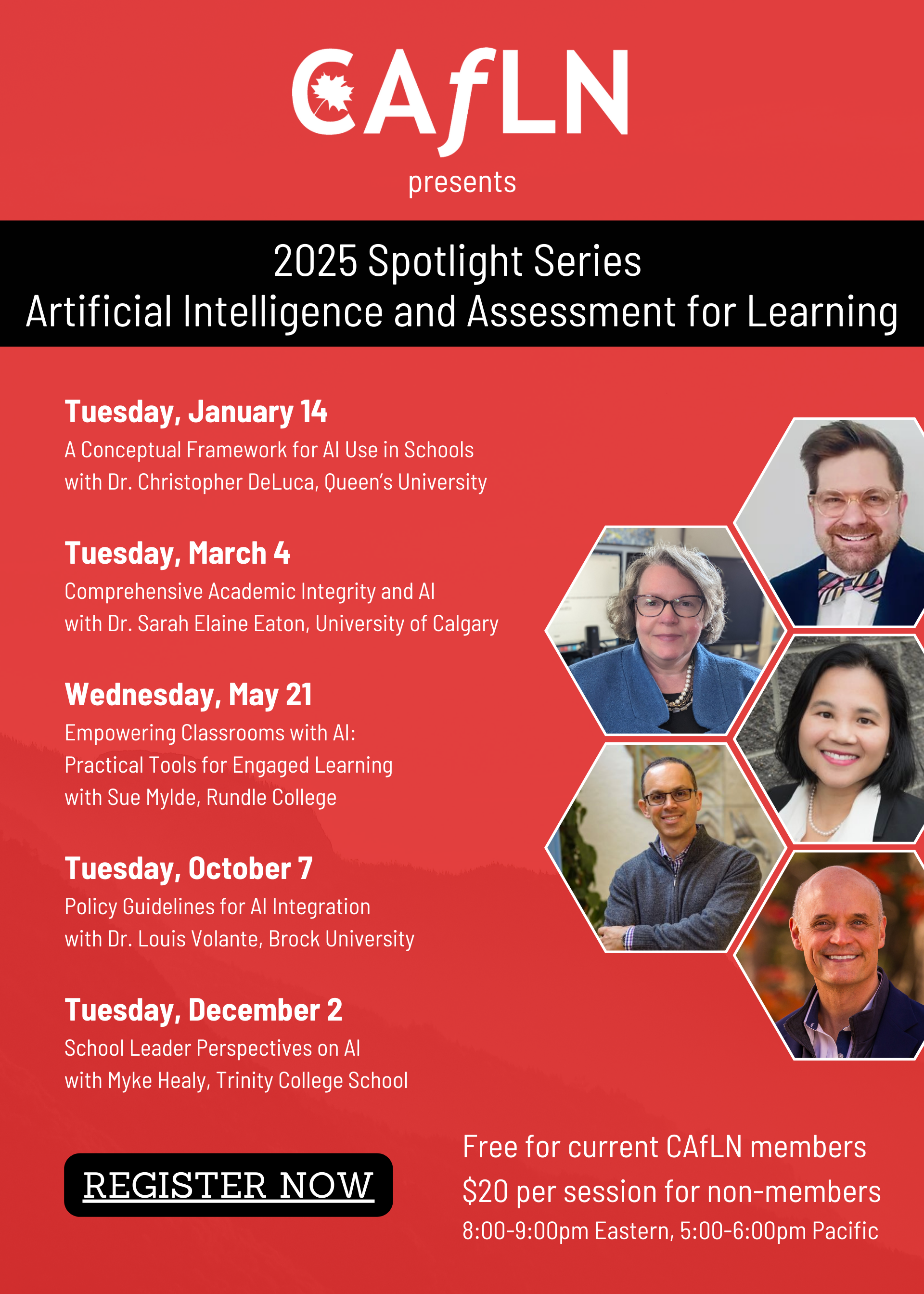 CAfLN is a Pan-Canadian non-profit network dedicated to nurturing and sustaining Assessment for Learning (AfL) as a means to maximize student learning in educational institutions across Canada.