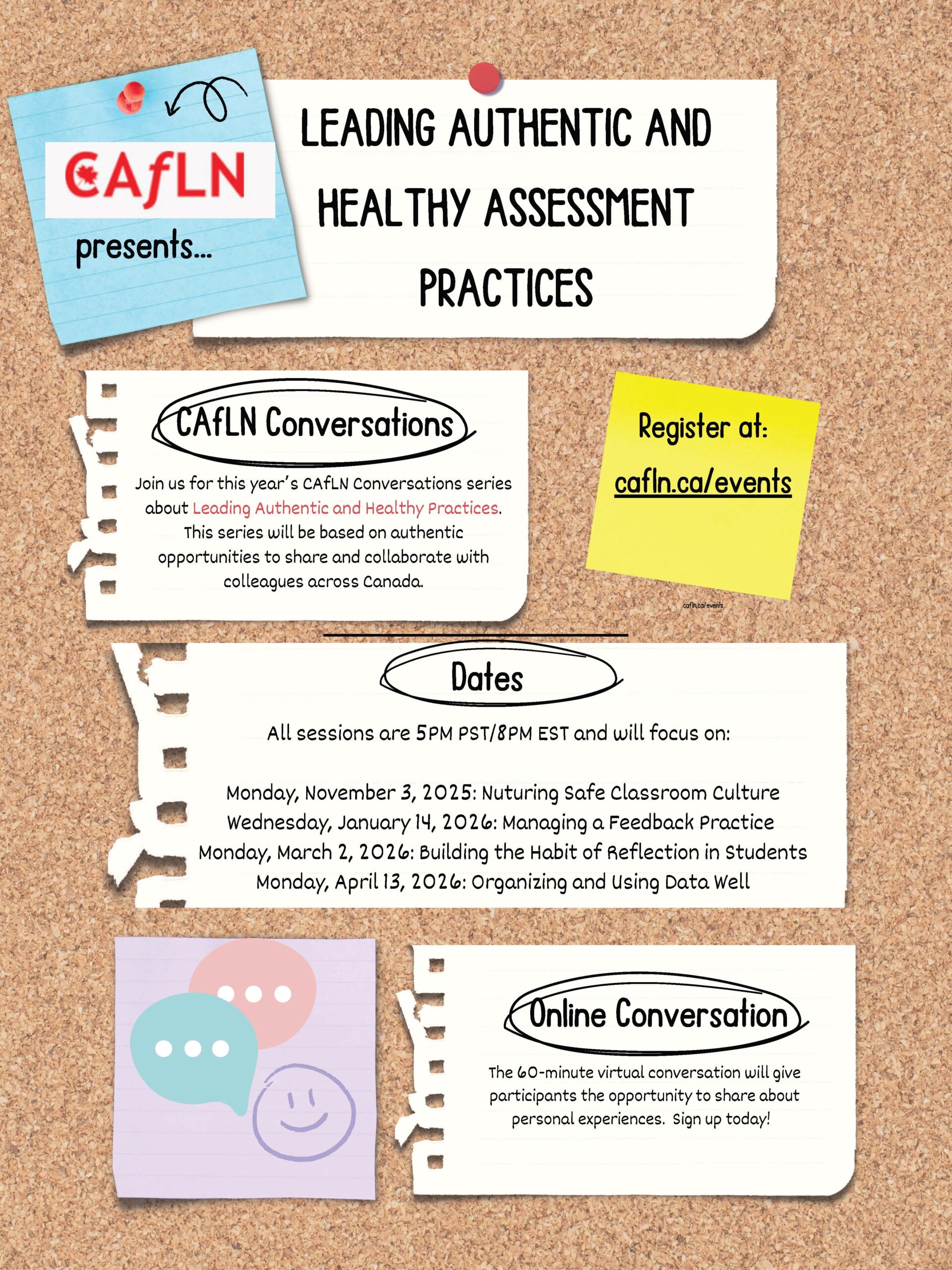 Join us for this year’s CAfLN Conversations series about Leading Authentic and Healthy Practices. This series will be based on authentic opportunities to share and collaborate with colleagues across Canada.